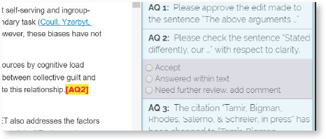 b. Answered within Text: If the query requires you to make a modification directly to the text, click “Answered within Text” option. The query locator will change its colour to blue