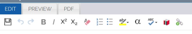 ) To apply a format such as Bold, Italic, Bold Italic, Superscript, and Subscript to the selected text. Changes are tracked, with new/changed text highlighted in green and the previous version shown with a red strike-through