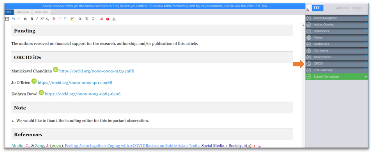 In such a situation, the user can either “ReValidate” again using the correct login. - Once done, make sure to click the “Include in Article” so that the correct ID is added to the proof with the exact name available in the ORCID database.