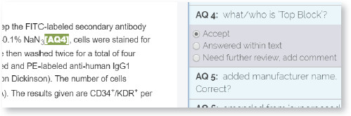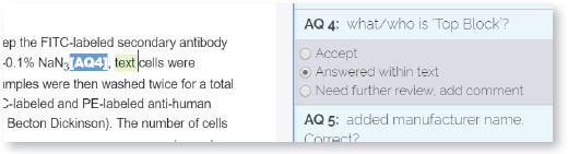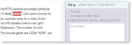 b. Answered within Text: If the query requires you to make a modification directly to the text, click “Answered within Text” option. The query locator will change its colour to blue