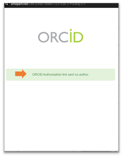 - Once the co-author's email ID is entered in the window, a unique hyperlink to validate the respective author is emailed for validation. A confirmation message will also be available.